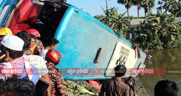 প্রত্যক্ষদর্শী সূত্র জানায়, কুমিল্লা থেকে ছেড়ে আসা রয়েল কোচ এসি সার্ভিসের একটি বাস (ঢাকা মেট্রো ব-১১-২৫০৪) নিয়ন্ত্রণ হারিয়ে খাদে পড়ে যায়। খবর পেয়ে হাইওয়ে পুলিশ ও স্থানীয়রা তাদের উদ্ধার করা হয়। আহতদের জেলার বিভিন্ন হাসপাতালে ভর্তি করা হয়েছে।