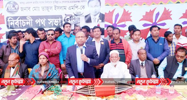 তিনি আরো বলেন, আমার নির্বাচনী আসন লাকসাম ও মনোহরগঞ্জে ১৯টি ইউনিয়ন ও ১টি পৌরসভায় ব্যাপক উন্নয়ন হয়েছে। প্রধানমন্ত্রী শেখ হাসিনা ঘোষণা দিয়েছেন প্রত্যেক গ্রামকে শহরে রুপান্তর করা হবে। বঙ্গবন্ধু যে স্বপ্ন নিয়ে দেশ স্বাধীন করেছিলেন তার সফলভাবে বাস্তবায়ন করছেন তারই সুযোগ্য কন্যা জননেত্রী শেখ হাসিনা। বঙ্গবন্ধুর কন্যা শেখ হাসিনার যোগ্য নেতৃত্বের কারণে স্বাধীনতার সুফল আজ ঘরে ঘরে পৌঁছে যাচ্ছে। এসময় জাতীয় পার্টির কেন্দ্রীয় নেতা প্রফেসর গোলাম মোস্তফা উপস্থিত থেকে বলেন, লাকসাম-মনোহরগঞ্জে জাতীয় পার্টির কোন প্রার্থী না থাকায় আমরা মোঃ তাজুল ইসলামকে সমর্থন জানাচ্ছি। তাই এই আসনে জাতীয় পার্টির কর্মী ও সমর্থকদেরকে ৩০ ডিসেম্বর সারাদিন নৌকা মার্কায় ভোট দেওয়ার জন্য আহবান জানাচ্ছি।