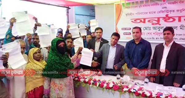 কুমিল্লার চৌদ্দগ্রামে উপজেলা ভূমি অফিসের নবনির্মিত তোরণ, আভ্যন্তরিন পাকারাস্তা, বাগানের উদ্বোধন ও ৫৩ জন ভূমিহীন পরিবারের মাঝে রেজিষ্ট্রিকৃত কবুলিয়তনামা দলিল হস্তান্তর করেছেন জেলা প্রশাসক মোঃ আবুল ফজল মীর।