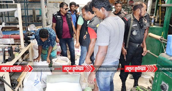 কুমিল্লার লাকসামে পলিথিন তৈরির কারখানা ও নকল ইলেকট্রিকস কারখানায় বিশেষ অভিযান পরিচালনা করেছে র্যাব। এ সময় ভ্রাম্যমান আদালতের মাধ্যমে দুই কারখানা সিলগালা, মালিকদের আর্থিক জরিমানা ও অনাদায়ে ৫ দিনের বিনাশ্রম কারাদন্ড প্রদান করা হয়েছে।
