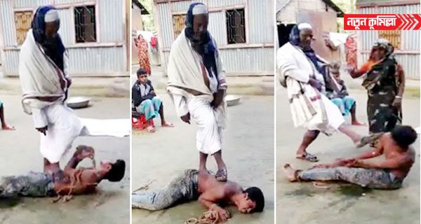 ভাইরাল হওয়া ভিডিওতে দেখা যায়, জামা-কাপড় খুলে রাজুকে হাত-পা বেঁধে প্রচণ্ড শীতের মধ্যে মাটিতে ফেলে রাখা হয়েছে। এই অবস্থায়ই তার মুখে ও বুকে লাথি মেরে চলছেন মাতব্বর তাহের।